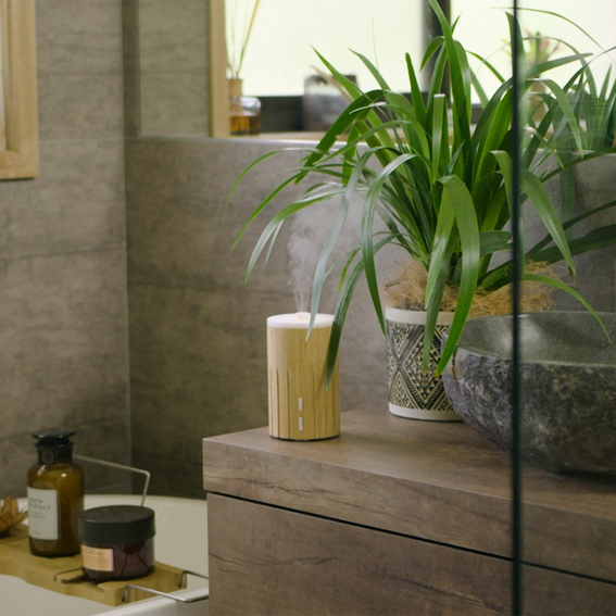 The subtle strip of colour changing LED lights that can be tailored to suit your mood – set to flow through a range of colours, set to a specific colour, or completely switched off while diffusing your favourite essential oils.
