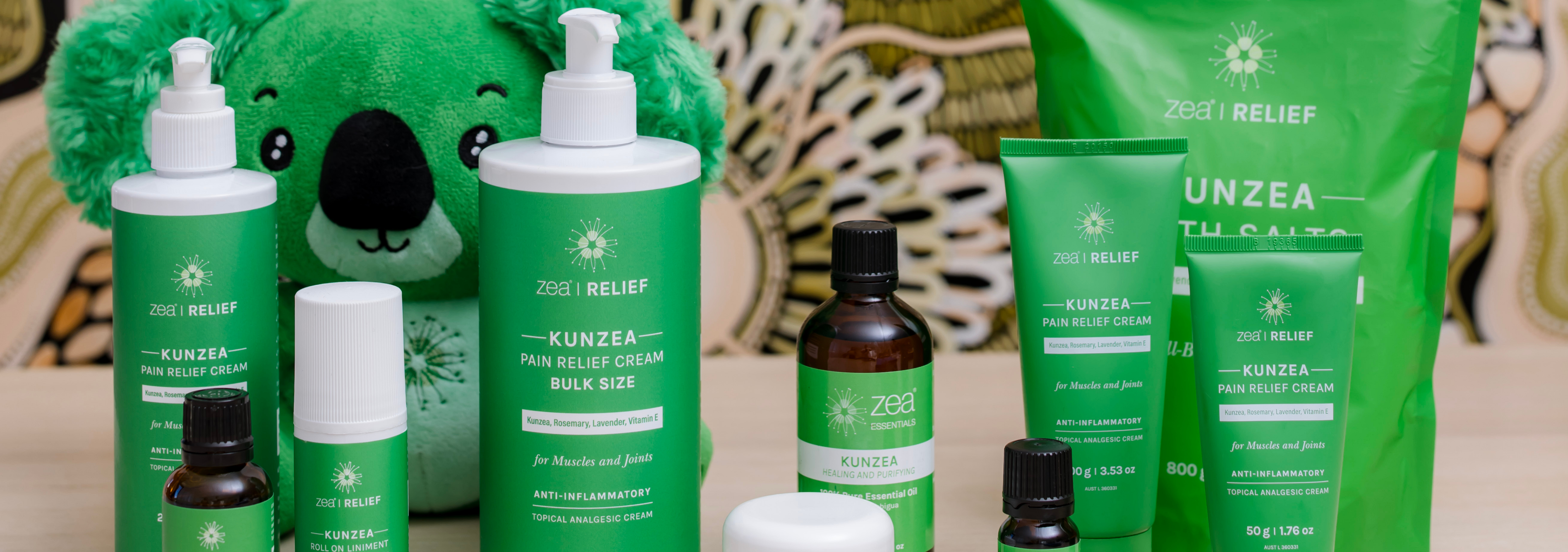 Explore the full Zea range - natural, plant-based products made in Australia to support pain relief, skincare, relaxation and everyday wellness. From our best-selling Kunzea formulations to essential oils, soothing sprays and gourmet honey, this is where you’ll find every product we make, all in one place.